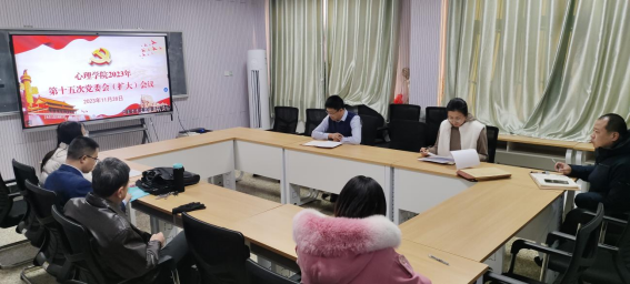于201室召开2023年第十五次党委会(扩大)会议,学院党委委员出席会议,团委书记赵旭涛、教工党支部书记吕邈和研究生党支部书记周月列席会议,会议由学院党委书记罗文伟主持。