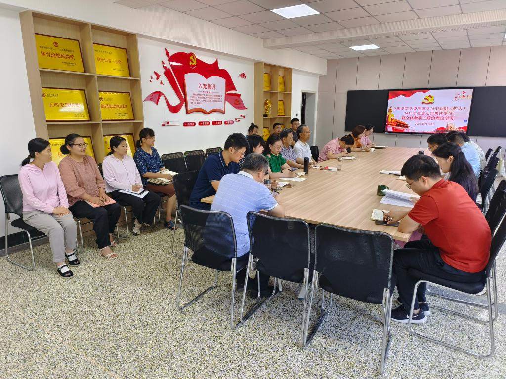 党委理论学习中心组(扩大)在310会议室举行了2024年度第九次集体学习暨全体教职工政治理论学习活动。理论中心组成员、全体教职工出席会议,会议由学院党委书记罗文伟主持。