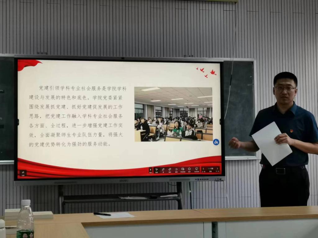 (通讯员:文丹凤 摄影:杨庆 吕邈)为深入开展学习贯彻习近平新时代中国特色社会主义思想主题教育,我院党委书记罗文伟同志和教工党支部书记吕邈同志于5月19日下午在学院201室为全体教工党员讲授专题党课。