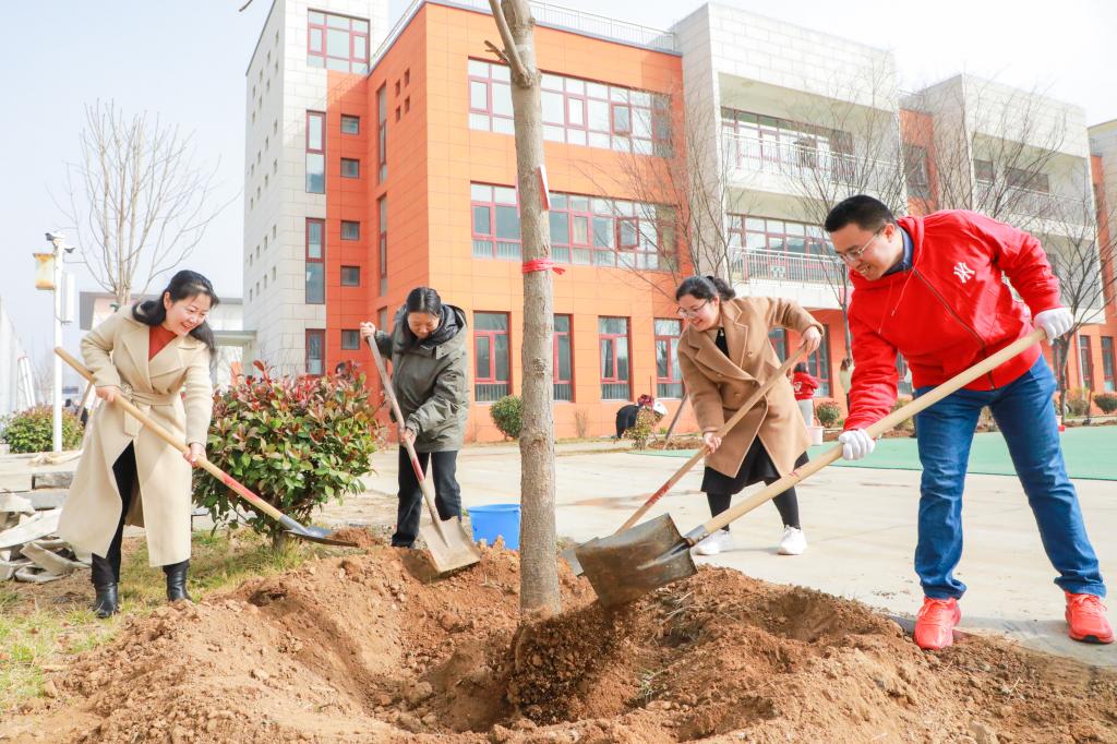 积极响应学校号召,组织教职工代表参与以“根脉七秩承杏雨·栋梁千顷启春林”为主题的植树活动,以实际行动践行生态文明理念,为校园增添新绿,以劳动教育厚植育人沃土,献礼学校七十载育人征程。