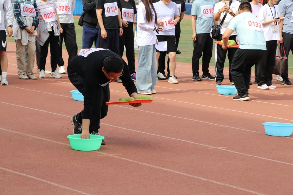 在备受瞩目的集体项目中,学院教职工化身“运动达人”,将赛场化为欢乐的海洋。“自行车慢骑”赛道上,王涛和陈圣栋两位老师屏气凝神,展现其平衡绝技,引发观众阵阵惊叹;“抢种抢收”环节,韩含、吕邈、刘春雷和杨庆四位老师化身“田间能手”,接力传递间尽显默契,用趣味竞技诠释劳动之美;“趣味毛毛虫”比赛中,陈亚青、钱虹、孙传波、袁光杰四人战队高喊着"一二一"的口号,以整齐划一的步伐驱动彩色“巨虫”奔向终点,将团结拼搏的体育精神演绎得淋漓尽致,取得了第九名的成绩。丹拥军老师以矫健步伐完成千米健步走,用实际行动诠释“生命在于运动”的真谛,最终获得第八名的成绩。通过赛场上的互动协作,教师们在欢声笑语中增进了情谊,凝聚起更强团队合力。