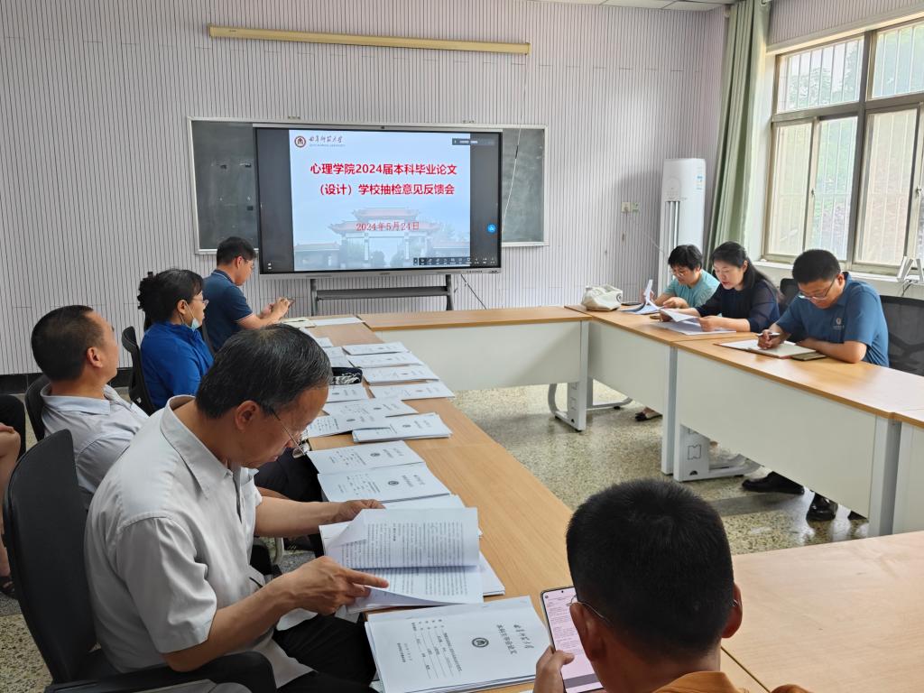 于201室召开2024届本科毕业论文(设计)学校抽检意见反馈会。全体教职工出席会议,会议由副院长李海青主持。