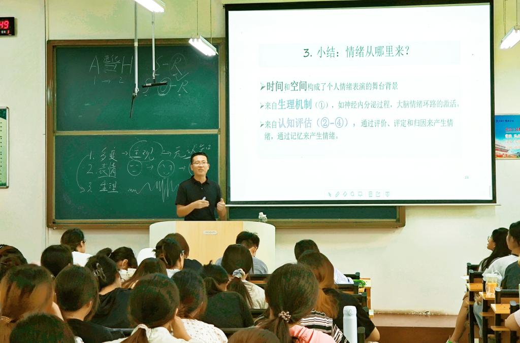 陈圣栋老师以其扎实的专业知识和富有激情的教学风格,为学生们讲授了《情绪心理学》课程,课程内容深入浅出,深受学生们的喜爱。课堂上,陈圣栋老师不仅传授了知识,更激发了学生们的思考和讨论,营造了一个互动和探究的学习氛围。学院领导与同学们一起聚精会神地听课,密切关注教师授课及学生听课状态,并详细记录了课程教学目标、教学内容和教学方法等。