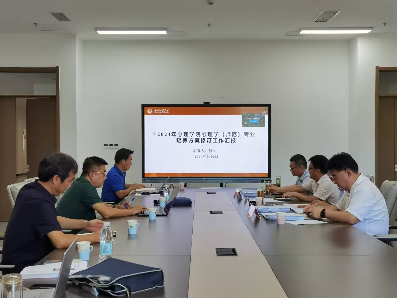 图2 何文广汇报2024级心理学(师范)专业培养方案修订工作