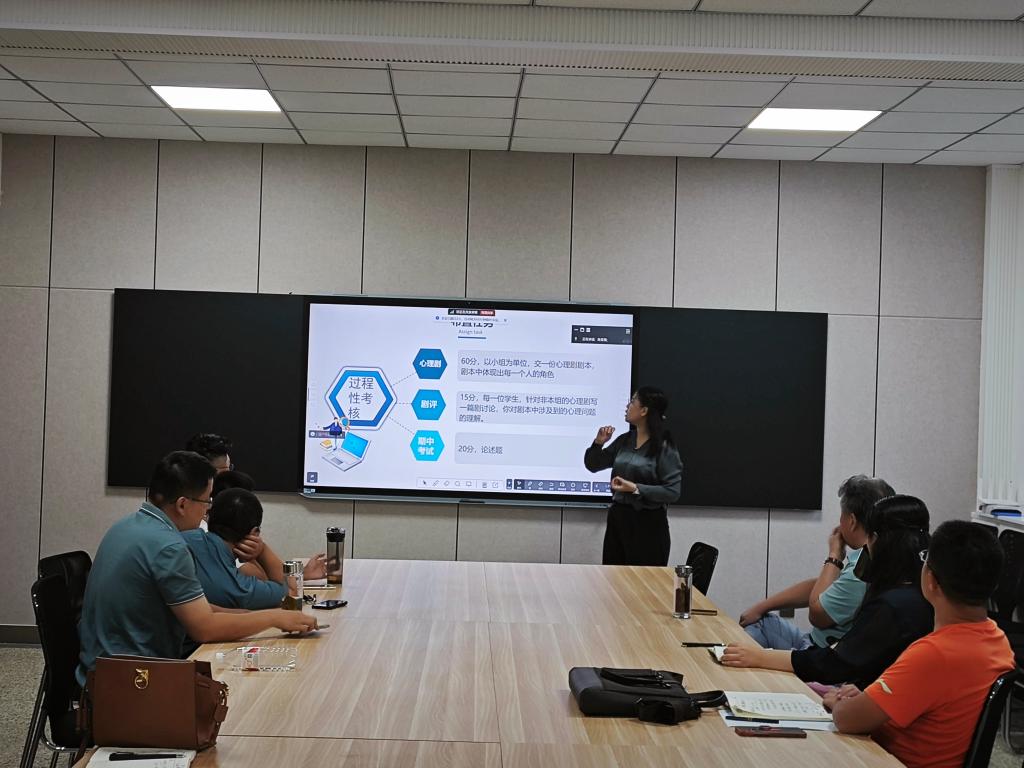 最后,由杜雅楠老师分享教学经验,她提出,可以运用心理剧的形式进行授课。她详细介绍了如何在课堂上开展心理剧,展示了心理剧如何帮助学生更好地理解自我、表达情感等。同时,她还提出了在模拟情境中学习应对心理困扰的方法,她表示心理剧作为一种生动、直观的教学方法,不仅能够极大地提升学生的课堂参与度,还能在轻松愉快的氛围中深化学生对心理健康知识的理解与应用,是一种值得推广的教学创新。