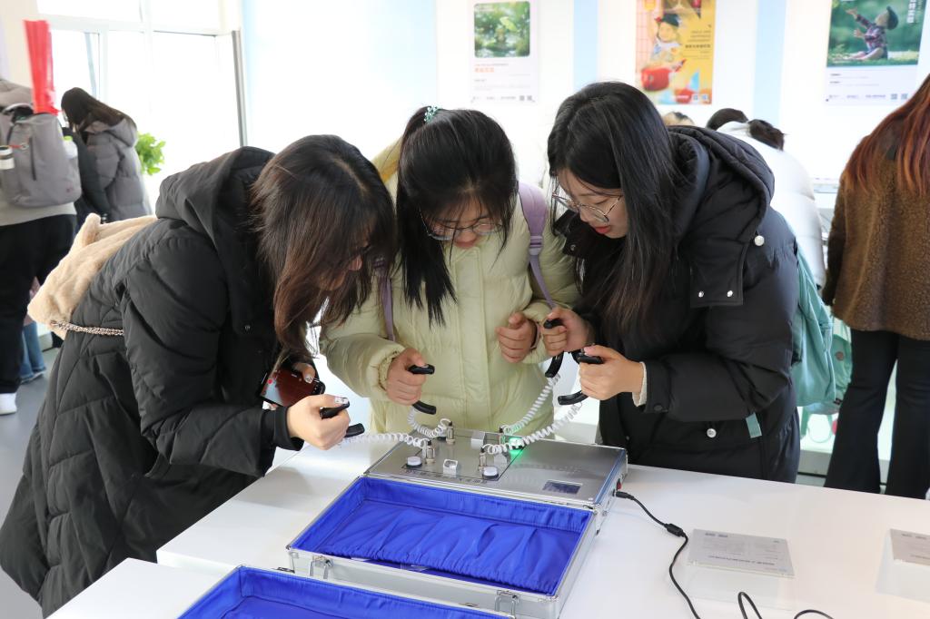 见习期间,学生们参观了基地的各个功能室,详细了解基地的设施设备和运营模式。在实验心理学体验室,学生们参与了注意力和思维的实验,实际操作让那些抽象的心理现象变得具体可感。情绪稳定性训练室则提供了实时情绪反馈,帮助学生们识别自己的情绪状态,学习如何自我调节,以更好地应对生活中的压力和挑战。