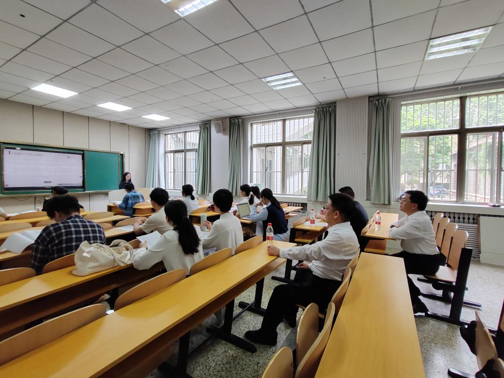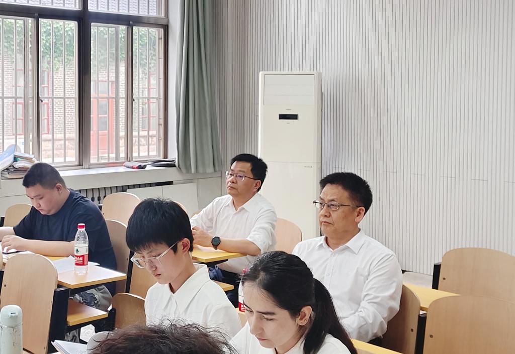 )5月14日下午,我院2025届本科毕业论文集中答辩工作有条不紊地展开。学校党委常委、副校长胡凡刚,教务处处长李傅山一行莅临我院,对本科毕业论文答辩工作进行指导。本次答辩共设有8个小组,分别在学院的不同教室进行。