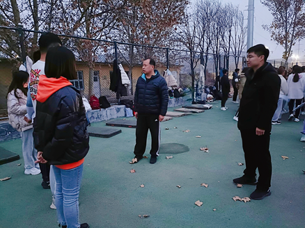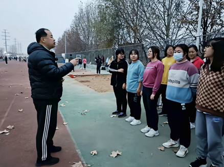 辅导员赵旭涛老师、贺现网老师到西操场冬训场地,激励运动员、教练员、服务人员并提出具体要求。
