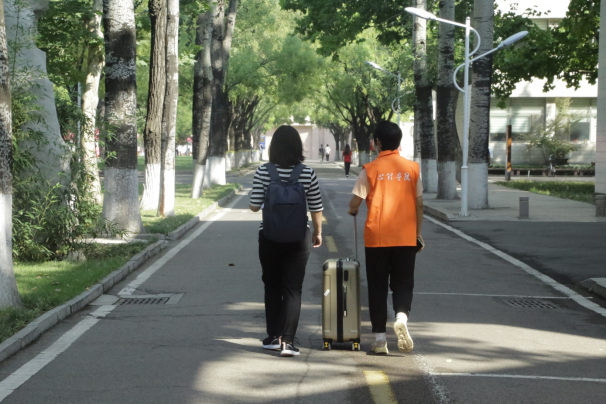 志愿同学值守,为同学们积极提供保障服务,确保迎新工作并然有序。