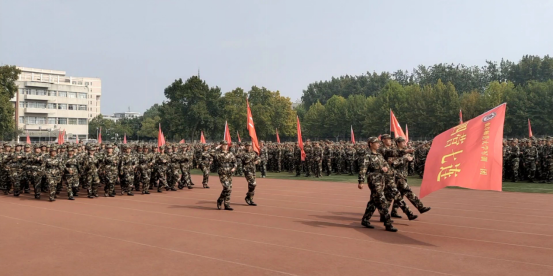 2022级新生步伐铿锵有力、口号响彻云霄,他们用整齐划一的动作、刚劲有力地摆臂展示着军训带来的蜕变,用坚定的眼神、挺拔的身姿赢得了现场观众的喝彩和掌声。