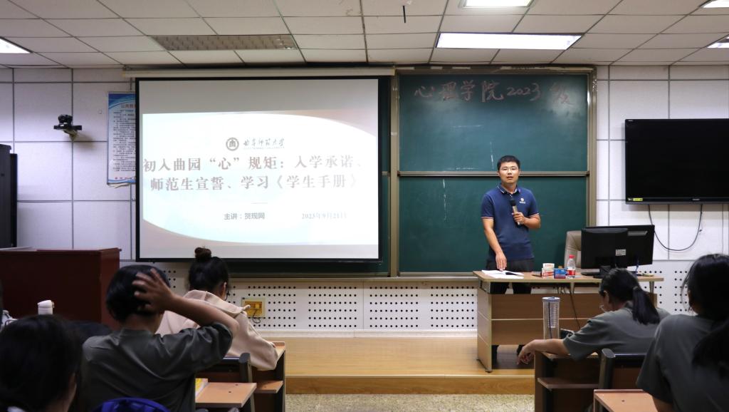 逐星辰大海,展青云之志。本次2023级新生入学教育系列之八初入曲园“心”规矩:入学承诺、师范生宣誓、学习《学生手册》活动的顺利举行,对于新生适应新环境、转变新角色、端正新态度起重要引领作用,有效带领新生将校规校纪内化于心、外化于行,以积极向上的心态投入学习生活之中,营造文明有序的校园氛围。