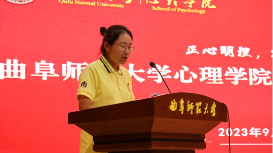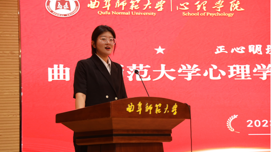学院优秀在校生代表、第二届学生会主席刁子桐发言。刁子桐寄语2023级师弟、师妹们珍惜大学时光,打破高中时对大学错误的刻板印象,既要目标高远、学海泛舟,又要培养兴趣、强化能力,在加强专业学习的同时,积极参与创新创业和竞赛活动,踊跃投身团委学生会等个人发展的有力平台,并用心理学的视角去看待周围的世界,保持热情、踏实前行,勇于行动、不留遗憾。