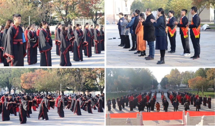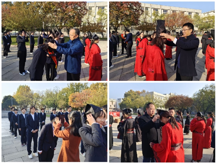 古装引赞引领各位学院领导面谒孔子,行三揖礼。并由与会教师为2023级本科生加冠加笄,心院学子也向师长回以鞠躬礼,加冠加笄代表着社会对成年身份的认可和期待,也要求学子们肩负起更多的责任和担当。