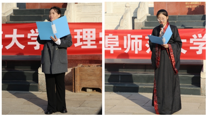 图5 教师代表杜雅楠、学生代表孙庆泽发表讲话