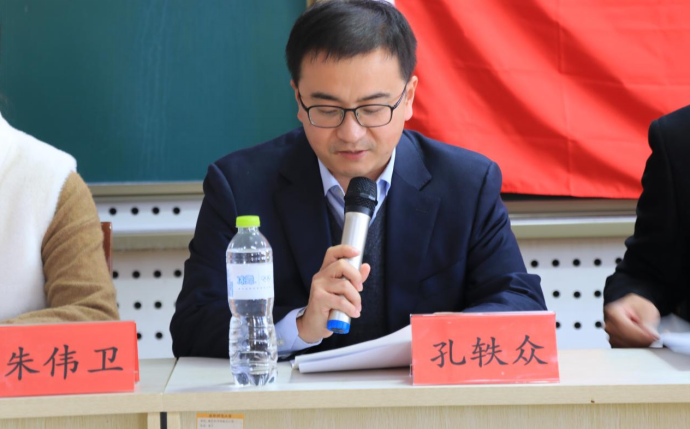 仪式第二项,孔轶众致辞。“时代各有不同,青春一脉相承。”孔轶众指出,青年想要有所作为,其一要具有辩证发展眼光,居安思危;其二要深化学习,坚定信念,努力提升自我,使得所学有所用。他希望同学们充分发扬曲师学子的优良传统,锐意进取,奋发有为,做新时代具有君子人格的马克思主义者。