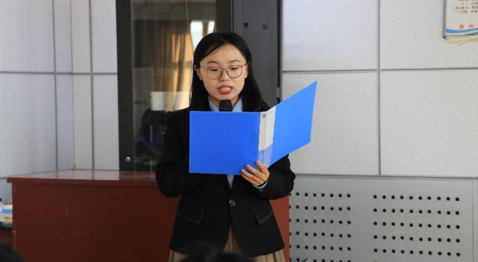 仪式第五项,”青马工程“培训班学员代表陈一诺发言。她分别从坚定理想信念,积极投身实践,争当先锋模范三个方面汇报学习心得,鼓励同学们为实现教育强国,全面建设社会主义现代化国家贡献青春力量。