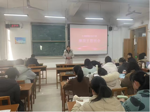 在班会过程中,各年级结合心理学专业特点和各年级的重点任务,通过辅导员集中宣讲、警示教育视频学习、典型案例剖析学习、学生心得分享交流等方式进行,将廉洁教育与诚信教育、纪律教育,社会公德、职业道德、生活美德教育以及法制教育结合起来,将廉洁文化与校风、学风、教风、院风、班风、舍风建设有机结合,筑牢学生廉洁自律的思想防线。活动过后,同学们纷纷表示,廉洁与大学生自身息息相关,要努力丰富自己的精神世界,共同营造“以清为美、以廉为荣”的校园风尚。