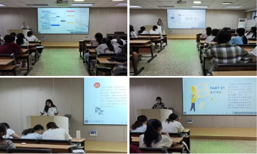在活动现场,参赛同学根据选择阅读与纪律相关的书目来分享自己的真实感受,并结合自己的经历,从不同角度,用不同方式向我们展现了他们对于纪律的理解,通过ppt、思维导图等多种方式展现《自控力》、《掌控习惯》等书其中的精彩片段,同时分享了自己写的书摘,引领大家共同走进纪律的世界。活动结束后,同学们纷纷表示,本次分享活动加深了对纪律的理解与认同,更明白了纪律存在的意义,并表示会在以后的日子里严格遵守相关纪律,多多阅读相关书籍。同时,同学们表达了对读书分享活动的高度认可和评价 。