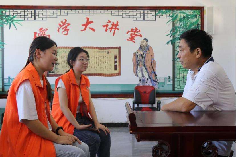 图1 实践队员向村干部了解留守儿童现况