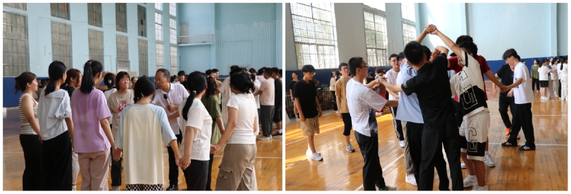 “分身不分手”解手链活动过程中,同学们十人一组围成小组,并通过手拉手的方式结成复杂的“人网”。活动现场氛围热烈,同学们在解开手链的过程中,充分发挥创造力和主观能动性,齐心协力,打破隔阂,密切彼此的联系,同时也加强了沟通与合作精神。