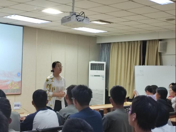 党委副书记、2024级辅导员朱伟卫就职业生涯规划展开讲解,2024级全体新生参与学习。