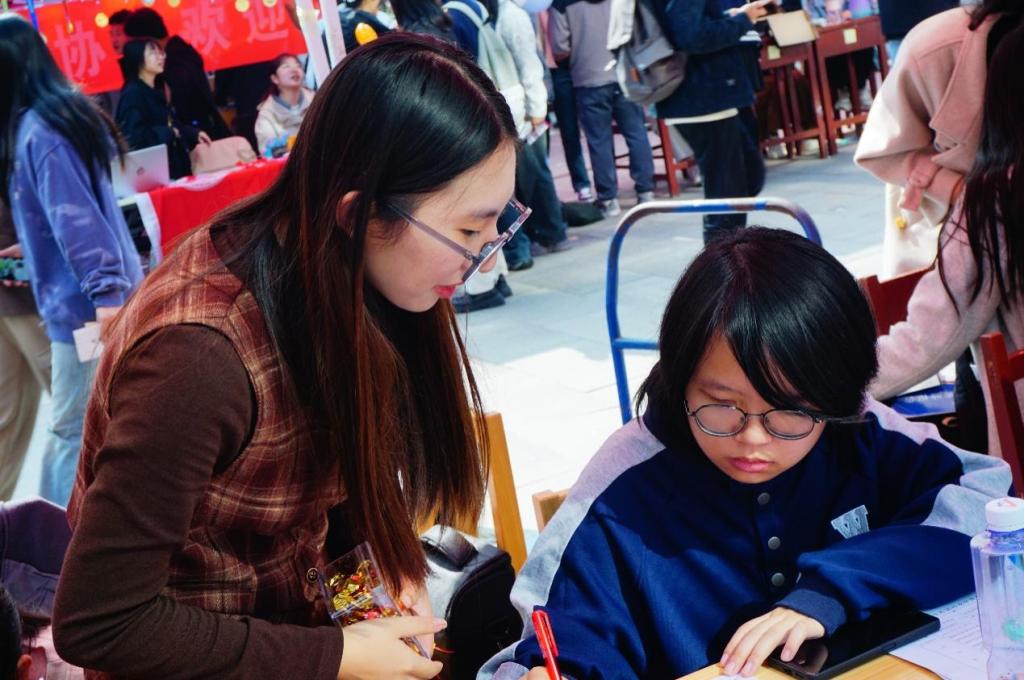 百花齐放,百团峥嵘。曲园推理社和桑榆社凭借新颖有趣的方式宣传社团,吸引了大批同学。曲园推理社是一个益智学生社团,为对推理和社交感兴趣的同学们提供一个交流和学习的平台,丰富学生们的课余生活,增强大学生的思维能力、联想能力、逻辑能力等综合能力。桑榆社是一个专注于服务退休老年教师的公益组织,致力于为退休教师提供全方位的生活关怀与支持,与离退休部门多次联合举办大型活动,为退休教师提供丰富多彩的文化娱乐和社交活动。活动现场,曲园推理社以其独特的海龟汤游戏活动向大家展示社团特点,为同学们带来了一场紧张刺激的头脑风暴,现场的同学们积极参与提问问题,试图揭开谜题的真相。桑榆社以其温馨的服务理念为引导,向大家详细展示出桑榆社的爱心活动和敬老精神,乐于奉献的同学们纷纷加入其中。