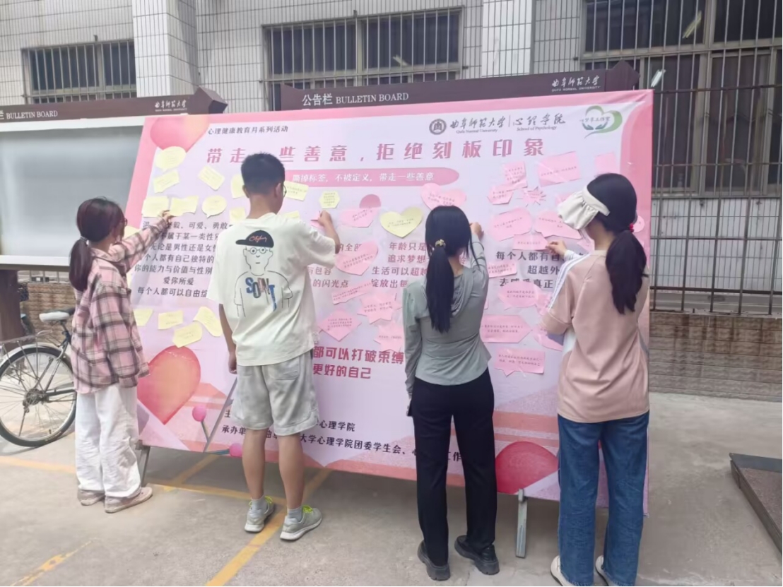 本次活动取得了极大的成功,同时此次活动不仅是希望通过传达一些善意,增强个体的心理健康,摆脱刻板印象的束缚,也期望积小成多,共同营造一个和谐美好的社会环境,为学校和社会做出自己的一份贡献。