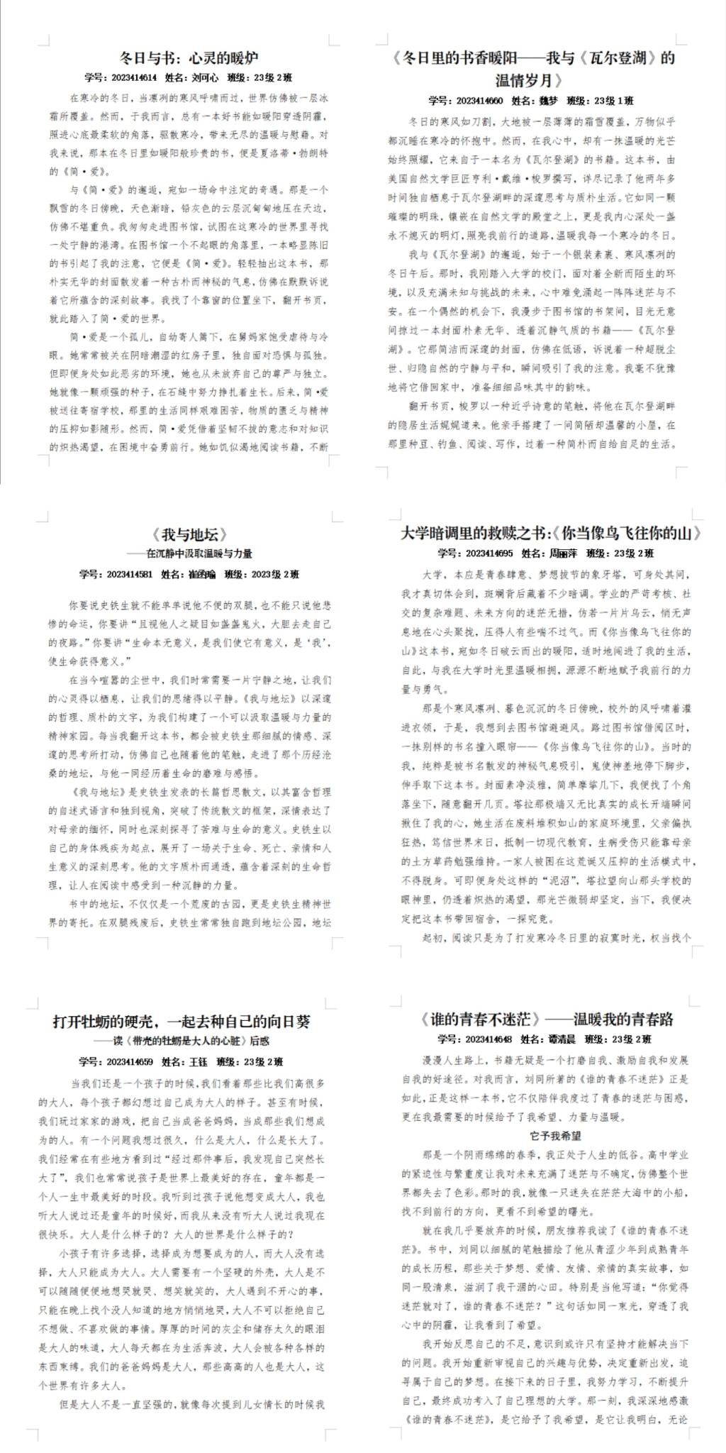 此次“冬日暖阳读书会”征文活动,不仅为同学们提供了一个展示自我的平台,更营造了浓厚的校园读书氛围,让书香在冬日里弥漫校园,温暖人心。未来,学生会将继续开展更多丰富多彩的文化活动,助力校园文化建设蓬勃发展。