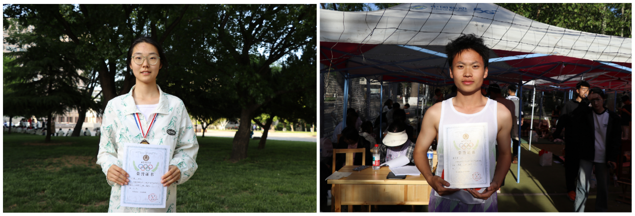 的运动健儿们全力以赴、奋勇争先。短跑项目中,他们如银枪突刺,爆发力十足,全力冲向终点;长跑赛道上,健儿们凭借顽强的毅力和坚韧的精神,克服身体极限,向着目标迈进;跳高、跳远场地上,运动员们精准把握时机,以专业的技巧和无畏的勇气,挑战新高度、新远度;在团体项目4×100米和4×400米的接力赛中,队员们默契配合,交接棒动作迅速流畅,现场鼓掌声与喝彩声此起彼伏,将比赛氛围推向高潮。在本次运动会赛场上,我院健儿奋勇拼搏,屡创佳绩。跳高项目中,王钰身姿矫健,凭借出色弹跳与稳定发挥,以扎实功底斩获季军;转战跳远赛场,她同样全力以赴,获得第七名的成绩。男子800米赛道上,李青锋似离弦之箭,全程保持节奏,在冲刺阶段凭借顽强毅力冲线,最终荣获第六名。两位运动员用实际行动诠释了超越自我、挑战极限的体育精神,期待他们在未来续写更多精彩篇章。