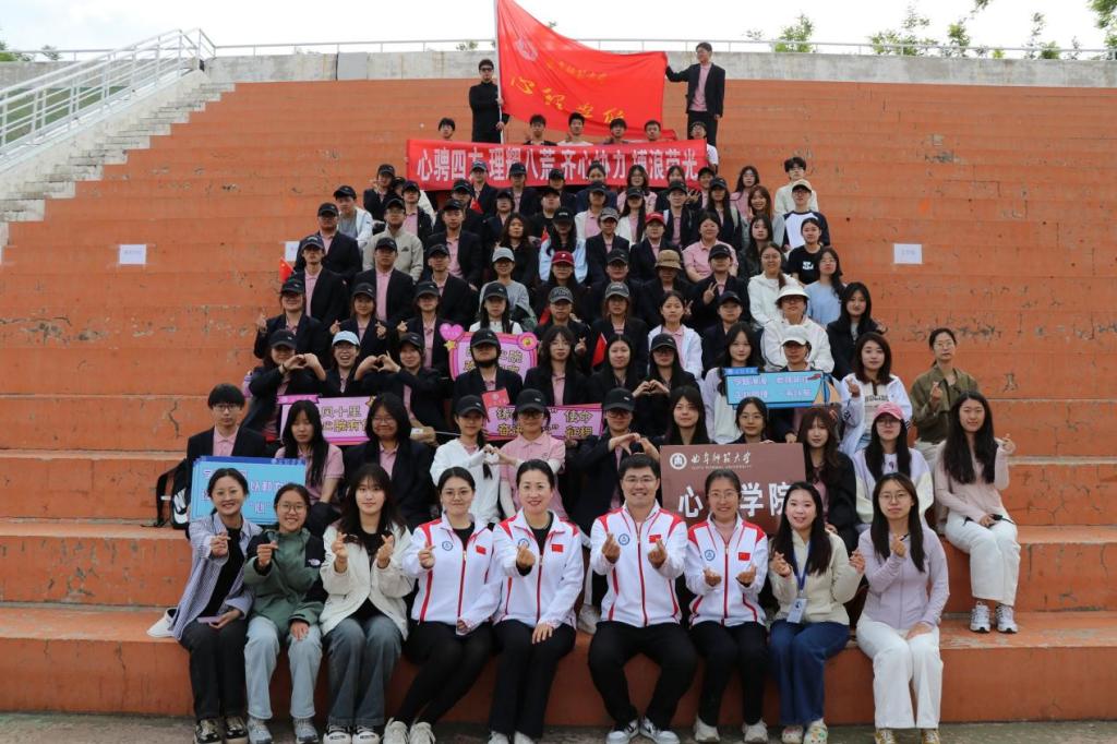 师生们组成的啦啦队热情高涨,他们挥舞着手臂,整齐有力的呐喊声裹挟着炽热的期待,将整个赛场点燃,为奋力拼搏的运动员们注入源源不断的力量。同学们还积极撰写加油稿,通过校园广播为运动员送上鼓励与祝福。院学生会各部门的志愿者们穿梭其中,为运动员提供赛场准备服务等,确保他们以最佳状态投入比赛,以实际行动传递着来自心理学院大家庭的温暖与关怀。