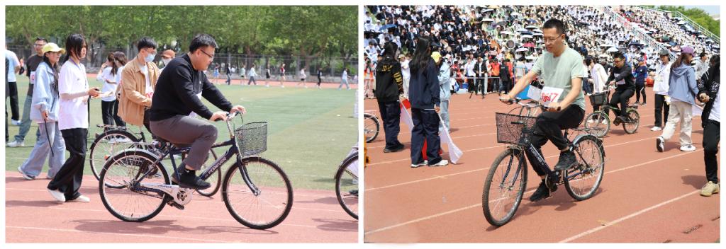 教师进行自行车慢骑比赛
