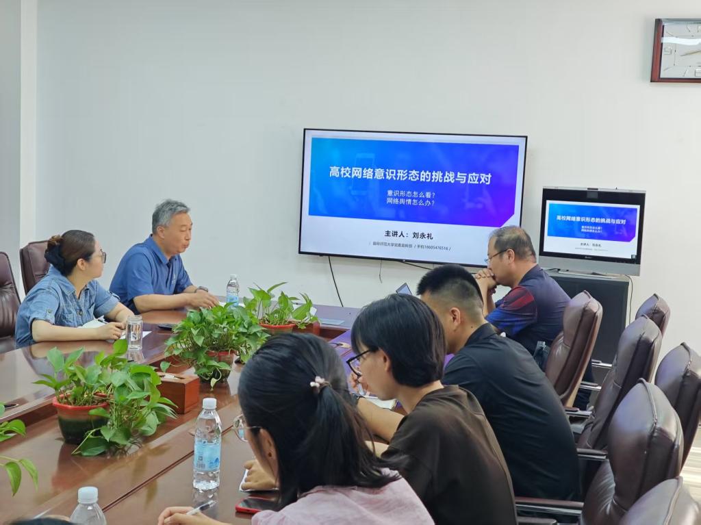 讯(通讯员:吕超)为深入学习贯彻习近平总书记关于意识形态工作的重要论述,提升师生对网络意识形态安全的认知水平,6月13日上午,我院教职工吕超参与在辅导员之家举办《高校网络意识形态的挑战与应对》专题讲座,本次讲座由学生工作处副处长毛永正主持,特邀学校党委教师工作部部长刘永礼主讲。