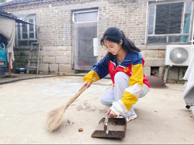 图3 实践队队员帮助打扫院子