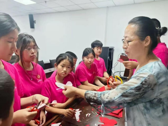 “耘籽夏长,共筑邻心”实践队返回家乡烟台海阳,联合当地非遗传承人修丽娟老师,开展了的“剪纸文化进课堂”暑期实践活动。活动以理论讲解和实践指导为主线,通过面向小学生开设剪纸课程、协助非遗传承人教学、组织作品展示等形式,让传统技艺在童心中生根发芽。
