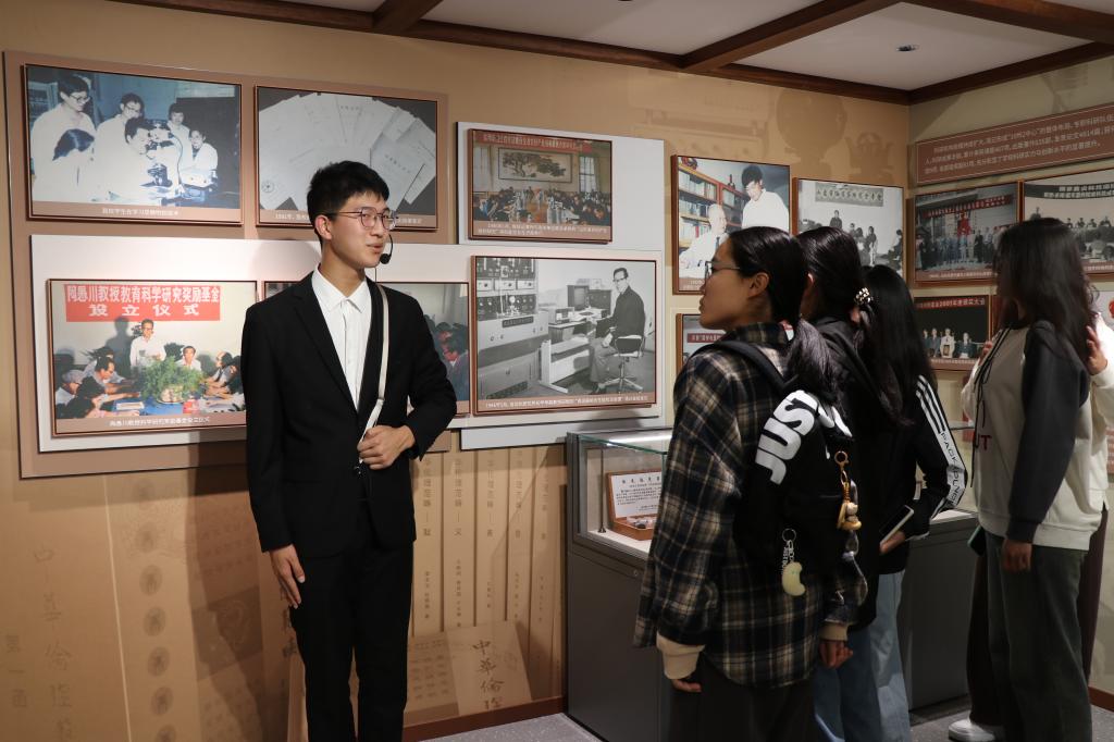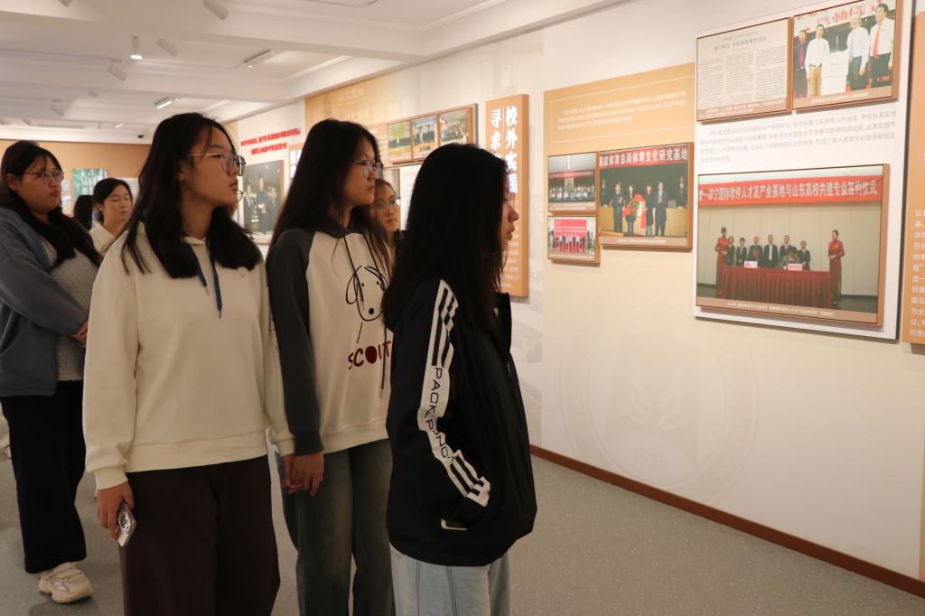 在校史馆讲解员的耐心引导下,同学们有序地步入馆内,按照既定的参观路线,逐一参观了三个展厅。第一展厅主要以图片与文字相结合的形式展现了我校七十年来的办学成就,讲解员带领同学们回顾了我校发展的七个阶段,从建校初期的艰难探索,到逐步发展壮大的稳步前行,再到如今在多个领域取得卓越成绩的辉煌时刻,同学们驻足每一幅图片、每一段文字前,认真聆听讲解,感叹曲园七十周年路程的艰辛与不易;第二展厅主要播放我校自建校以来的珍贵影像资料,包括校庆宣传片等,影像中,一幕幕熟悉的校园场景、一场场精彩的活动画面,仿佛将同学们带回到了过去的时光。大家聚精会神地观看,时而露出会心的微笑,时而为学校的辉煌成就而鼓掌。第三展厅通过场景与实物还原的方式展现了我校辉煌的办学历史。同学们近距离观看老教材、浮雕墙等,仿佛穿越时空,回到了那段峥嵘岁月。老教材上工整的笔记、浮雕墙上栩栩如生的人物形象,都诉说着学校曾经的奋斗与辉煌。校史馆的每一件陈列的展品,都仿佛是历史的见证者,承载着一个个感人至深的奋斗故事;每一块精心设计的展板,都如同时间的书页,书写着一段段令人敬仰的光辉传奇。