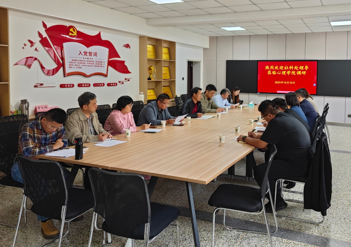 (通讯员:韩含 摄影:于馨宇)2024年10月10日下午,社科处处长朱莉雅、副处长滕国飞、计划科李巧敏老师、信息科司甫老师和成果科张璐老师莅临我院进行调研。学院院长何文广以及部分教师参与调研。