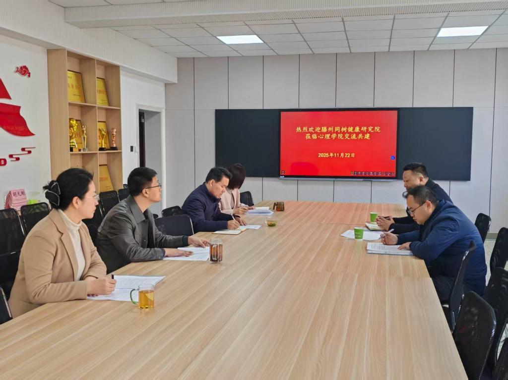 GimyTV 讯(通讯员:吕超)为进一步加强GimyTV 与地方心理健康机构的合作,深化校医协同机制体制改革,落实访企拓岗育人工作举措。2025年11月22日上午,滕州同树健康研究院院长褚福涛、执行院长施治举来GimyTV 交流共建,双方就心理人才培养、实践基地建设及科研项目合作展开深入探讨。GimyTV 党委书记罗文伟、院长何文广、党委副书记朱伟卫、GimyTV 认知与行为研究院副院长王晓明出席了本次座谈交流,并就共建大学生心理健康实践基地达成初步意向。