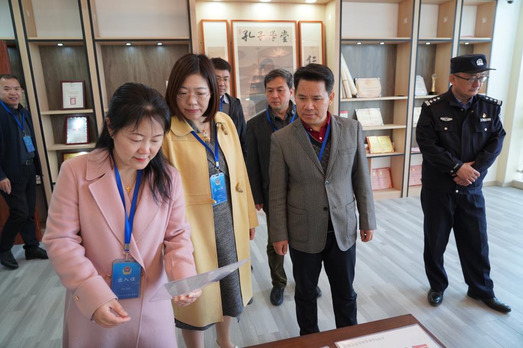 何文广一行参观了济宁市经航学校,详细了解学校3个多月来的建设情况。该校建立了专门矫治工作体系,设置了红色课堂、非遗课堂、诵读课堂、书法课堂、音乐课堂、具体课堂等六大特色课堂,建立了“警师共育”的管理队伍,拥有完备的安全设施。