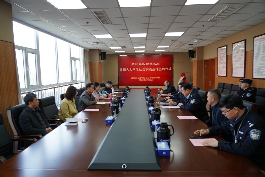 院长何文广、副院长李海青、副院长王晓明、教授牛盾、孙俊才和团委书记贺现网一行前往济宁市经航学校举办大学生社会实践基地签约授牌仪式并开展“访企拓岗”调研活动,济宁市司法局党委委员,市戒毒所党委书记、所长尹林壮、济宁市戒毒所党委副书记、政委张炜、济宁市经航学校校长王玉、副校长郝宗秋、张斌、济宁市苇航学校副校长张成文参加活动,活动由张炜主持。