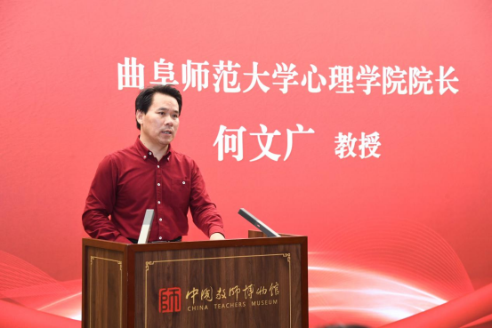 何文广聚焦心理学学科发展和学院发展两方面介绍了学院发展概况,并表达对本次山东省高中心理健康骨干教师的培训任务的承担深感荣幸。他表示,在准备工作方面,邀请一批省内外知名的高校专家进行专题讲授以及经验分享;在课程设置方面,采取理论、观摩、研讨、体验、实践五位一体的培训模式;在组织服务方面,实施全方位服务模式,保障培训顺利进行,希望学员们能够抓住机会,潜心研讨,增加经验,并预祝本次培训圆满成功。