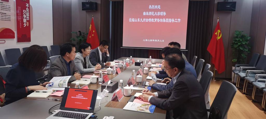 在山东九州金榜教育咨询集团,交流双方首先互相介绍了与会人员。期间,董事长冯海宁对李志红一行表示热烈欢迎,并详细介绍了集团的基本情况。李志红对山东九州金榜教育咨询集团的热情接待表示感谢,为双方下一步的深入合作提出指导性意见,并详细介绍了2024届毕业生情况,希望以此次调研交流为契机,双方能够建立长效机制,在实习就业、人才培养、产教融合等方面进行全方位深度合作。