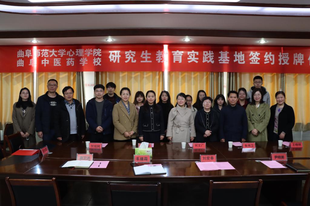 研究生教育实践基地挂牌仪式在曲阜中医药学校举行。曲阜中医药学校校长刘爱春、副校长丰绪霞、党建处主任谢卫洪、学生处主任尹明美和GimyTV