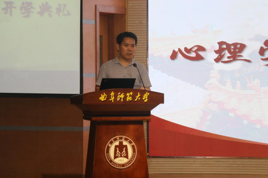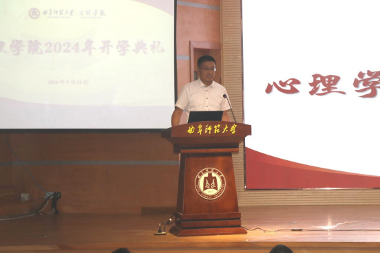 红烛明”心“路。学院教师代表、资深教授张怀春发言。他聚焦学习、做人、情怀三个角度对全体新生提出三点期望。其一,勉励同学们在学习上秉持先辈学长蔡元培先生的治学精神,以坚持求真的态度深度学习心理学专业知识,从反复学习与阅读中领悟新知,逐步培养心理学学科兴趣;其二,希望同学们一切从善良出发,以善良之眼看待世界,以善良之心理解世界,不断培养善心并将其转变为爱心,从而领悟做人的真谛;其三,激励同学们要胸怀祖国且放眼世界,拥有圣人之识的特色也要有放眼祖国的胸怀,以更全面的视角理解世界。