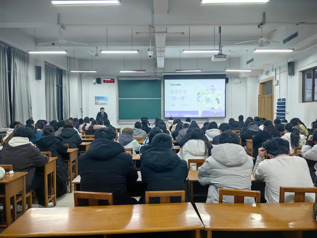 2月16日晚,我院全体辅导员组织本年级全体学生开展安全开学“第一课”主题班会。辅导员围绕身心安全、财产安全、网络安全、交通安全等方面进行了讲解,重点强调了宿舍安全、实验室安全,提醒同学们从不能违章用火用电入手,切实化解安全风险隐患,做校园安全的模范践行者。